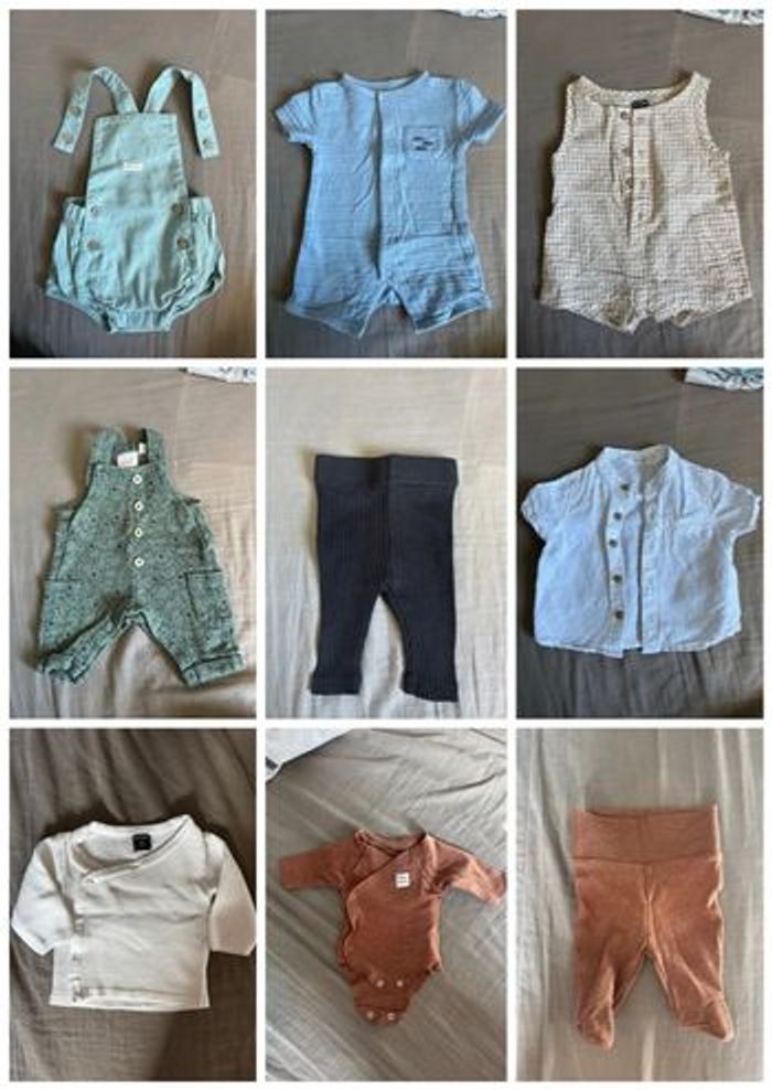Lot de vêtements bébé, naissance et 1 mois/ 50cm et 56cm, tout est pratiquement neuf, n’a pas beaucoup étaient porté, ensemble, pyjama, bodies, lot de 22 pièces. Tout a toujours étaient lavé avec une lessive spéciale bébé (persavon) et jamais passé au sèche Possibilité d’avoir plus de photo si nécessaire ☺️ Le prix peut être négociable 😊