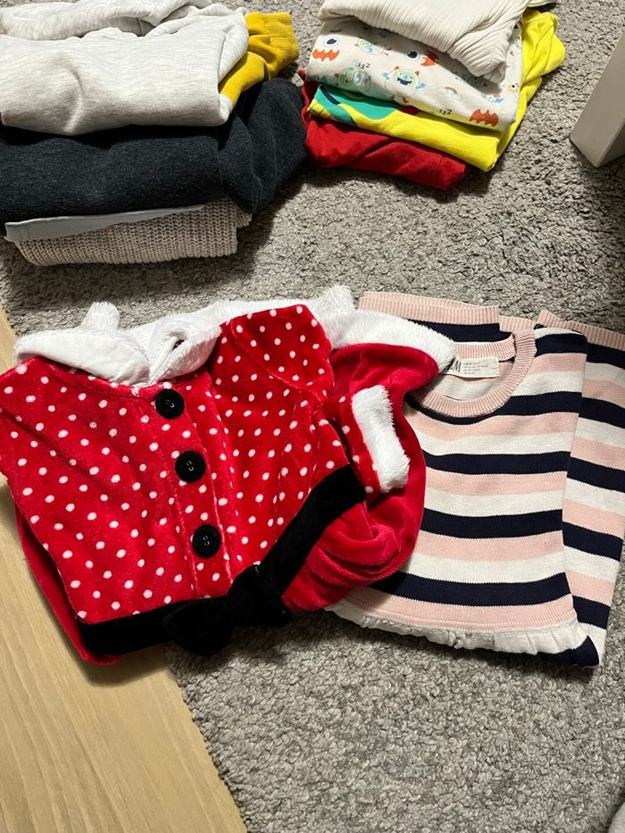 Bonjour, je vends un lot de vêtements pour fille de 18 mois à 2 ans. Il contient : 2 robes (dont une robe de Noël), 3 pulls, un sous-pull, un haut de pyjama et un ensemble d’été, soit 9 pièces au total. Le tout est en très bon état.