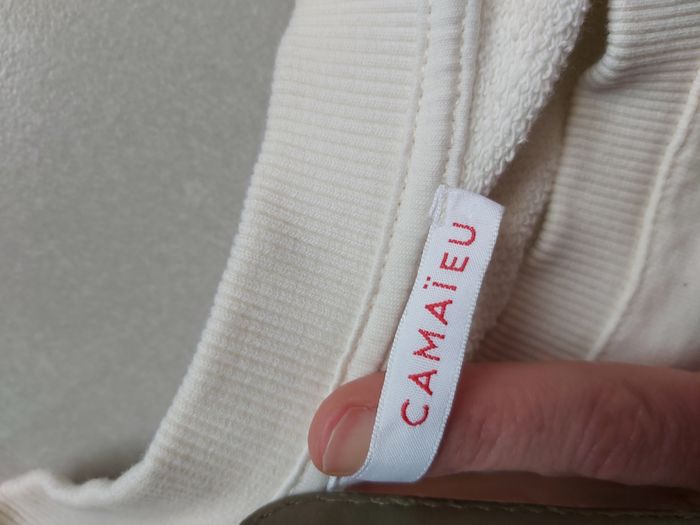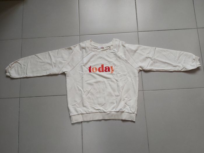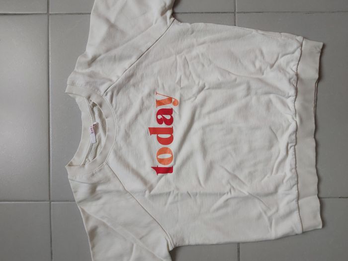 .Pull Couleur blanc cassé Motif Today 2 petite tâche marron clair sur le devant voir photo Taille L #carineddiLfemme