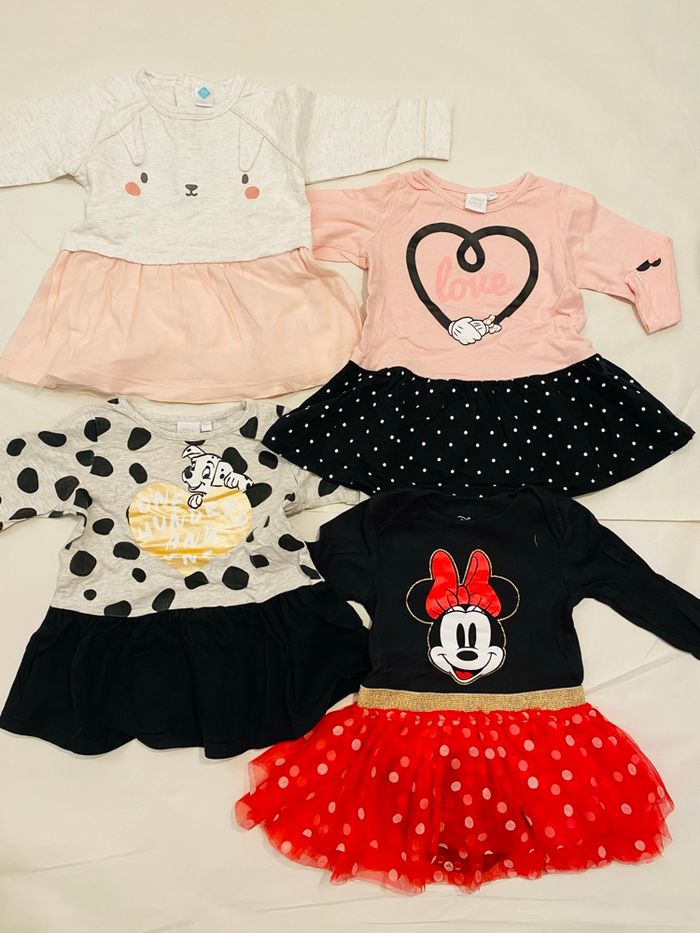 Lot de 4 robes manches longues Taille 9 mois Marques : Disney, Primark, Tex Très bon état