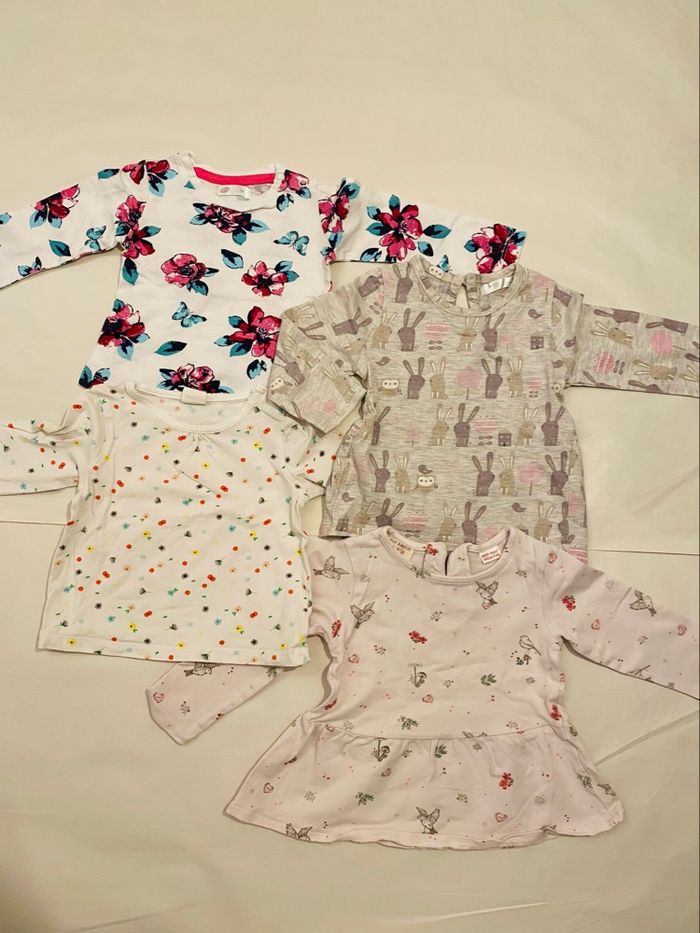 Lot 4 t-shirts manches longues fille 12 mois - photo numéro 1