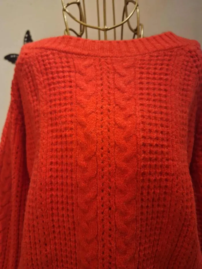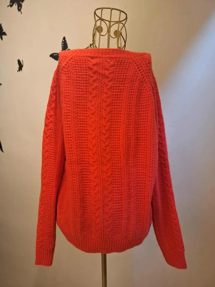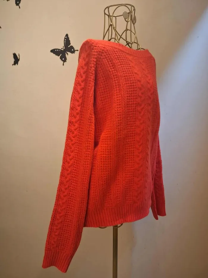 Pull rouge & mailles torsadées - longueur 56 cm - coupe droite - matière épaisse & doux au contact de la peau - taille unique idéale pour les tailles M & L ou 38 & 40 - état sans défaut ps : je ne fais pas de photo portée #pullrouge #pulltorsadé #pullhiver