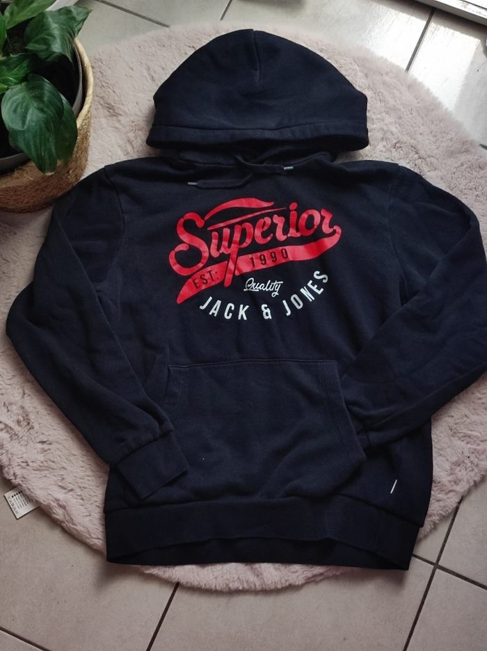 sweat à capuche polaire , flocage intacte, poches kangourou latérales. Marque jack & jones en taille unique. En parfait état Dimensions Épaules 48,5 cm Aisselles 58 cm Tour de taille 47,5 cm Hauteur 65 cm