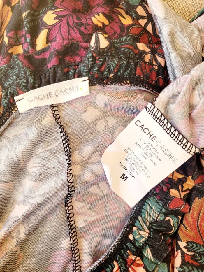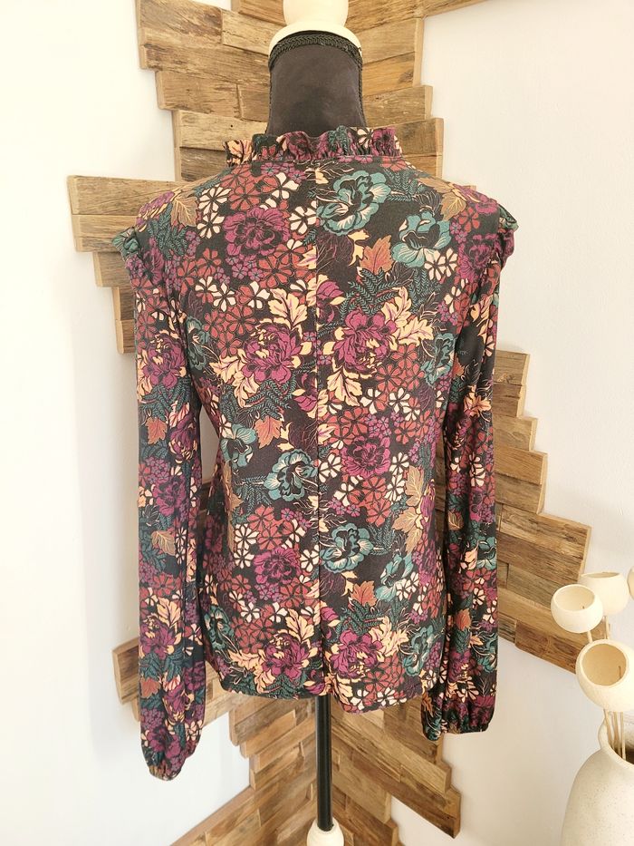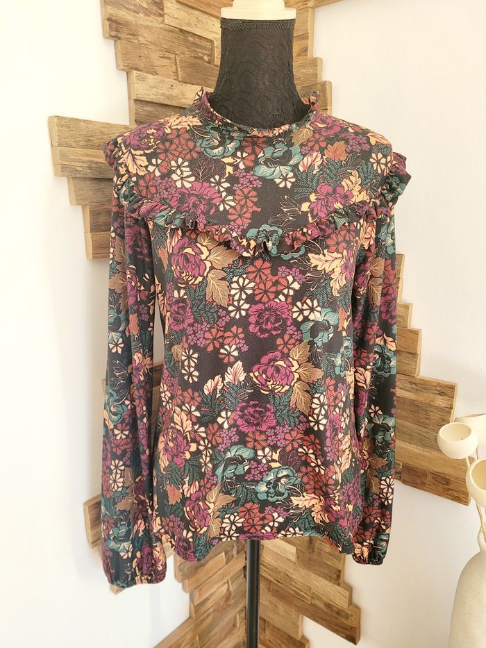 Très joli blouse Cache Cache en taille M, au motif fleuri dans des tons chauds (violet, vert, beige). Coupe fluide, confortable et féminine, avec un petit col froncé et un volant sur la poitrine pour une touche bohème. ✨️État : très bon état, portée quelques fois 👚Matière : agréable et légère (95% polyester 5% élasthanne) 📏Coupe : manches longues 💡Idéale pour : looks automne/hiver, bureau, sorties casual 📦 Envoi rapide et soigné