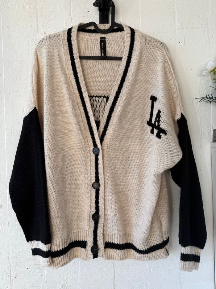 Gilet cardigan Old School collègue universitaire en maille imprimée LA !🎉🧥 ✨ Ce cardigan allie confort et style à la perfection chaleur et élégance. Sa maille et ses détails d'inspiration universitaire lui confèrent un look Old School tendance et confortable, idéal en toute occasion. 💁‍♀️ 🌟 Fermeture boutonnée classique, coupe décontractée, ce qui en fait une pièce polyvalente qui se prête à toutes les occasions. Que ce soit pour une journée décontractée ou une soirée en ville, ce cardigan est l'allié idéal. 🌈✨ 🌸 Le tissu tricoté est doux, offrant chaleur et confort. Il est parfait pour les journées fraîches et les soirées douillettes, vous permettant de rester élégante et confortable toute l'année. ❄️🔥 🏅 Les détails d'inspiration universitaire, comme les rayures contrastées sur les manches et l'emblème sportif LA Print, apportent une touche jeune et décontractée à ce cardigan. C'est un clin d'œil stylé à l'esthétique athlétique classique, qui donne à votre tenue une allure tendance. 🏀🎓