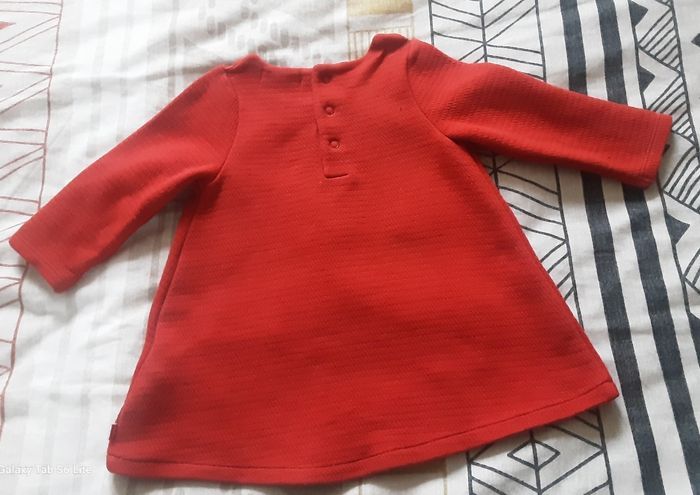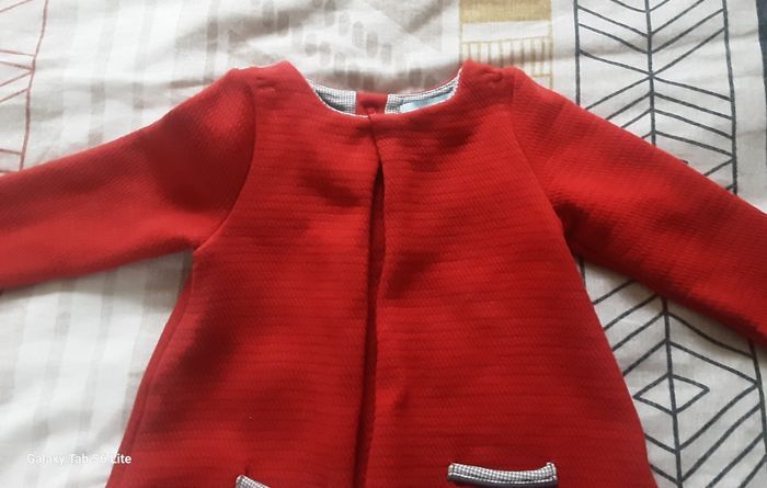 9Très jolie robe rouge Manches longues Col arrondi Pli creux devant Petites poches devant Fermeture dos pressions Age 9mois stature 71cm Marque Obaibi Très bon état A retiré sur place où possibilité d envoi