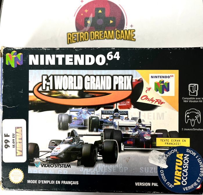 F1 World grand prix pour Nintendo 64 Cartouche vendu avecc sa boite et sa notice, la cartouche a quelque marque, la boite a quelque marque d'usure voir photo envoi soigne en 48h Max