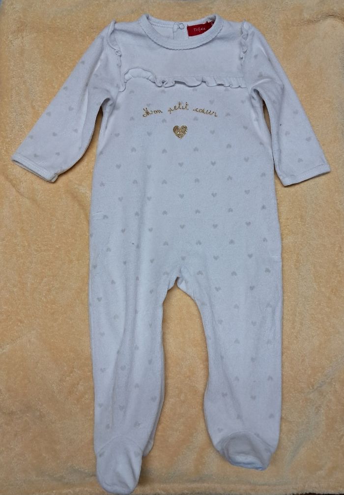 Pyjama 1 pièce Tissaïa taille 12 mois Épais Logo doré Froufrous Boutons pressions à l'arrière Étiquette coupée Réductions lots activées
