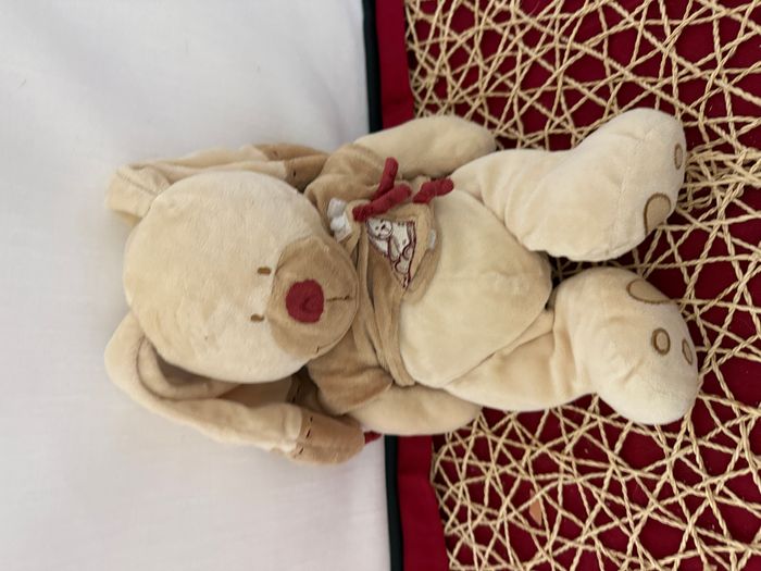 Peluche lapin NICOTOY Bastien veste marron bordeaux visage souriant - photo numéro 3