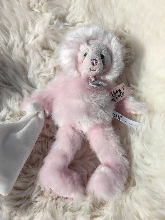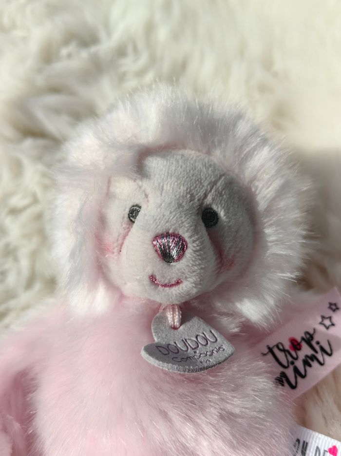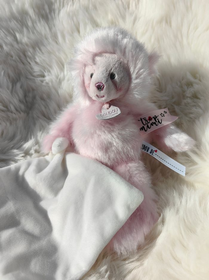 Doudou et Compagnie Peluche Ours Ourson et son Doudou Mouchoir 22 cm rose Trop Mimi DC3551