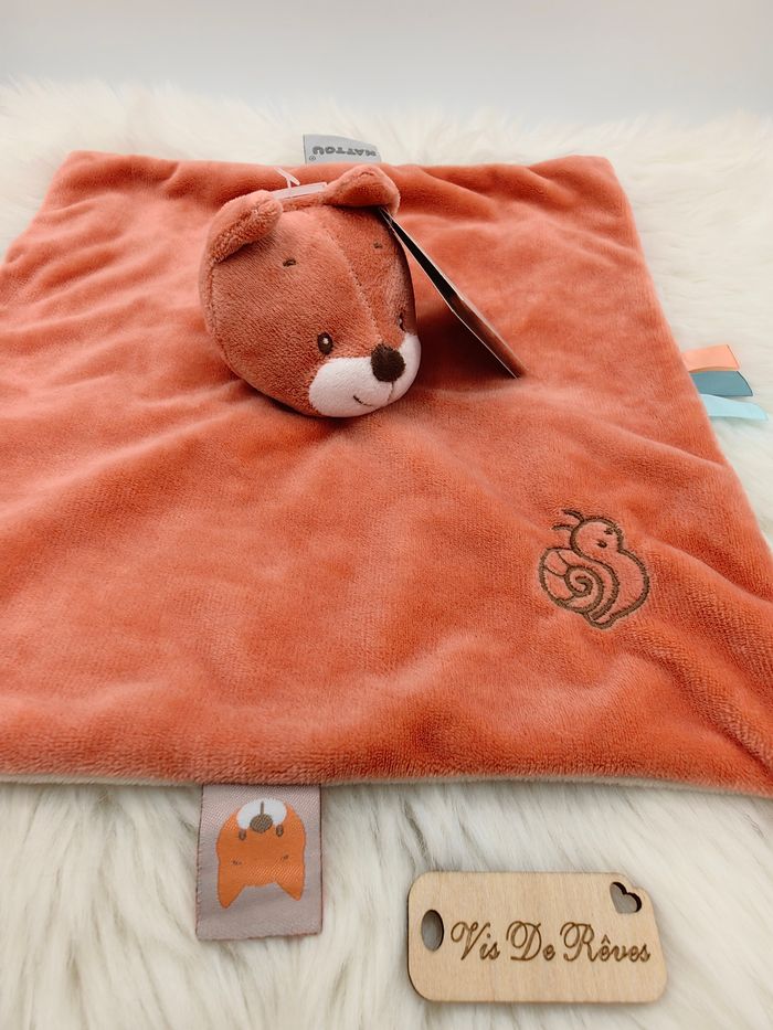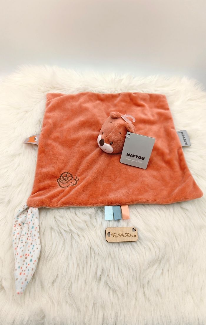 Doudou plat Renard Fanny & Oscar orange beige attache tétine Nattou