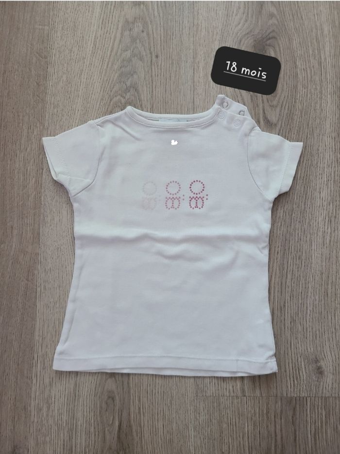 T-shirt fille 18 mois Le point blanc sur la photo n'est pas une tâche c'est un montage photo juste pour caché l'étiquette que j'ai mi dessus ⭐️ Vêtements propre ⭐️ 📦 Envoi rapide et soignée 😁 🥳 Achetez en lot, économisez sur les frais de livraison 😉