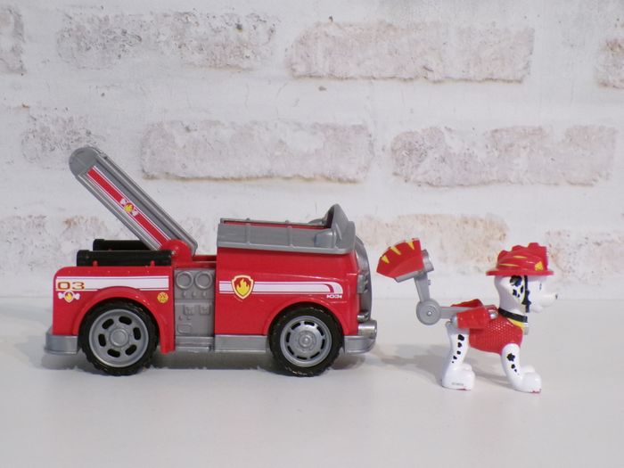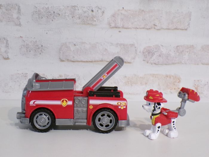 Camion de pompier Marcus - Paw Patrol - Pat Patrouille, en super bon état, proche du très bon état (l'arrière du brad est râpé). La figurine est en bon état. Mon dressing est trié par catégories, tailles et saisons pour les vêtements. Cliquez sur mes liens # qui sont dans l'annonce. #sonia222404 #jouetenfantsonia222404 #patpatrouillesonia222404