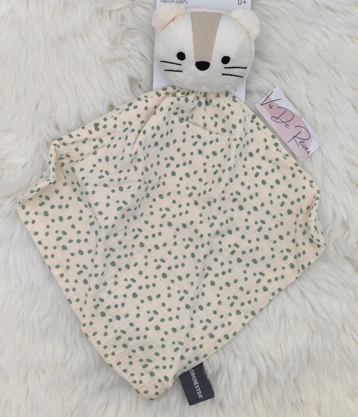 Doudou Plat  Chat Tigre Lange Blanc Pois Vert Orchestra - photo numéro 1
