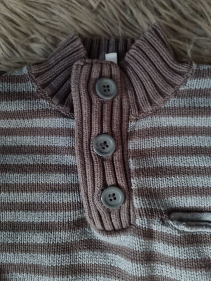 Pull rayé à col boutonnée, taille 24mois marque Kidkanaï, avec une poche.