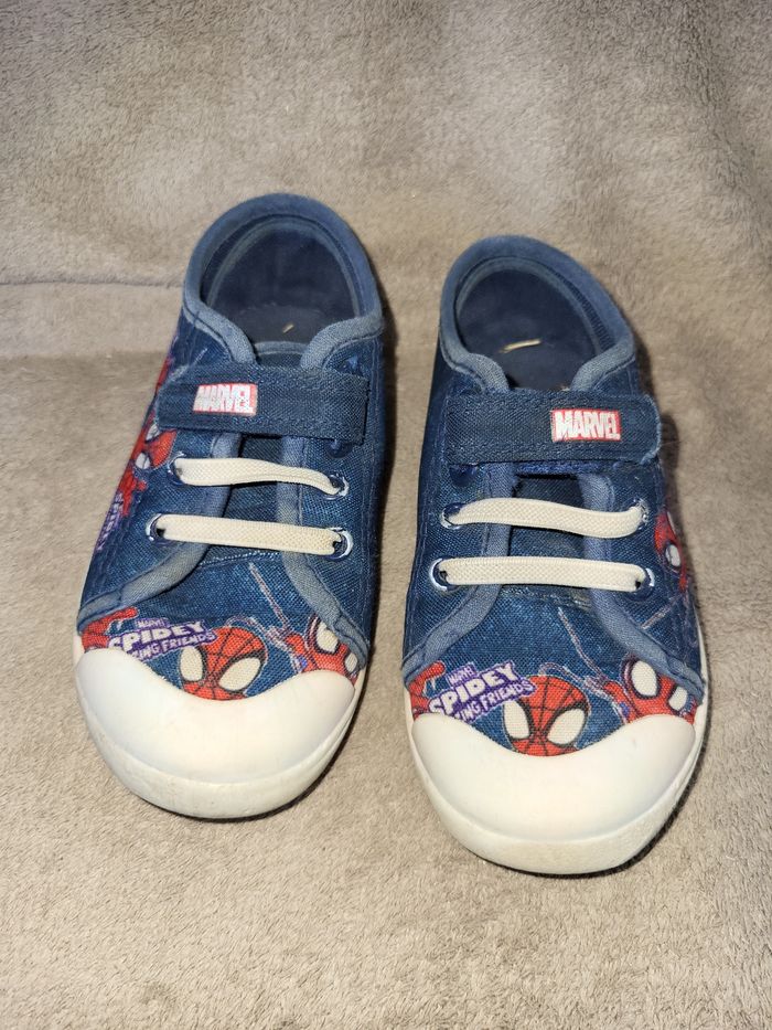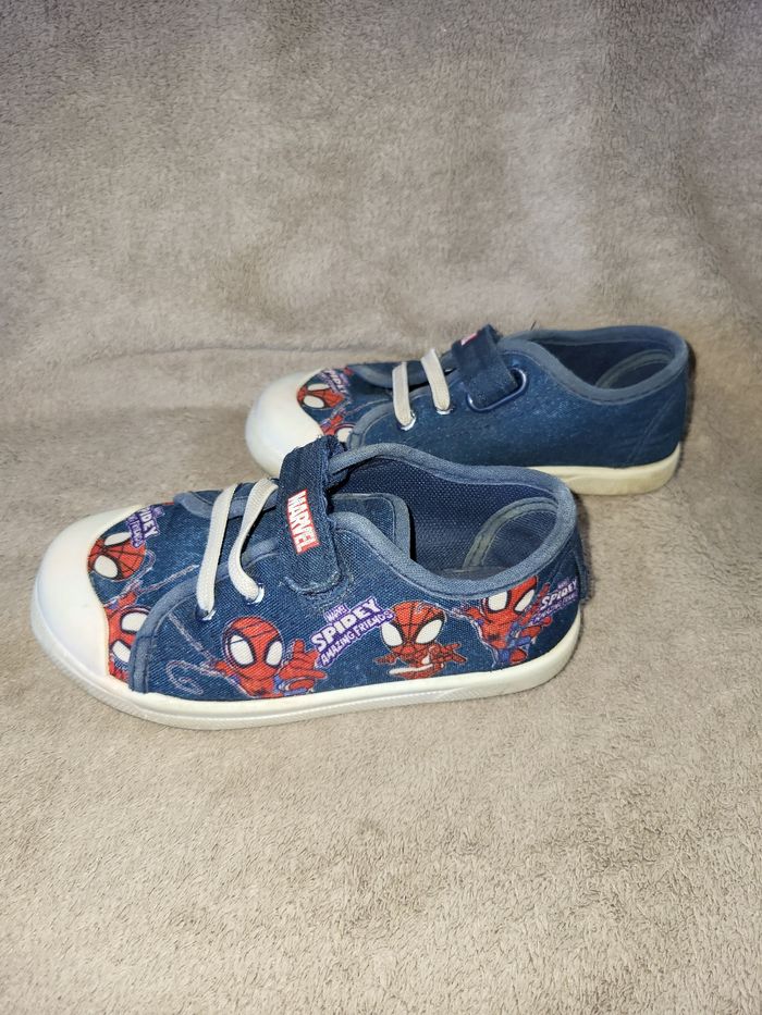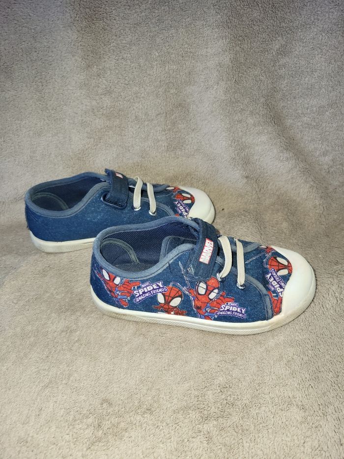 Baskets en toile Marvel Spidey Pointure 27 mais taille petit plutôt 26 Enfilage facile Lacets élastiques + scratch Bleu motifs spiderman Bien portées Quelques traces d'usure #virgy61chaussuresgarcon