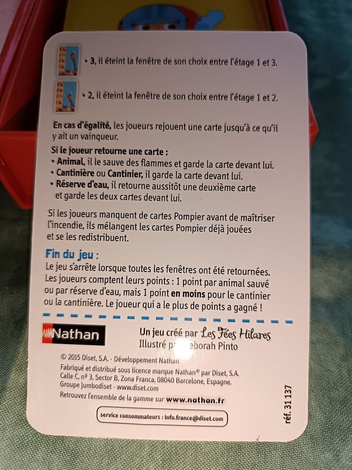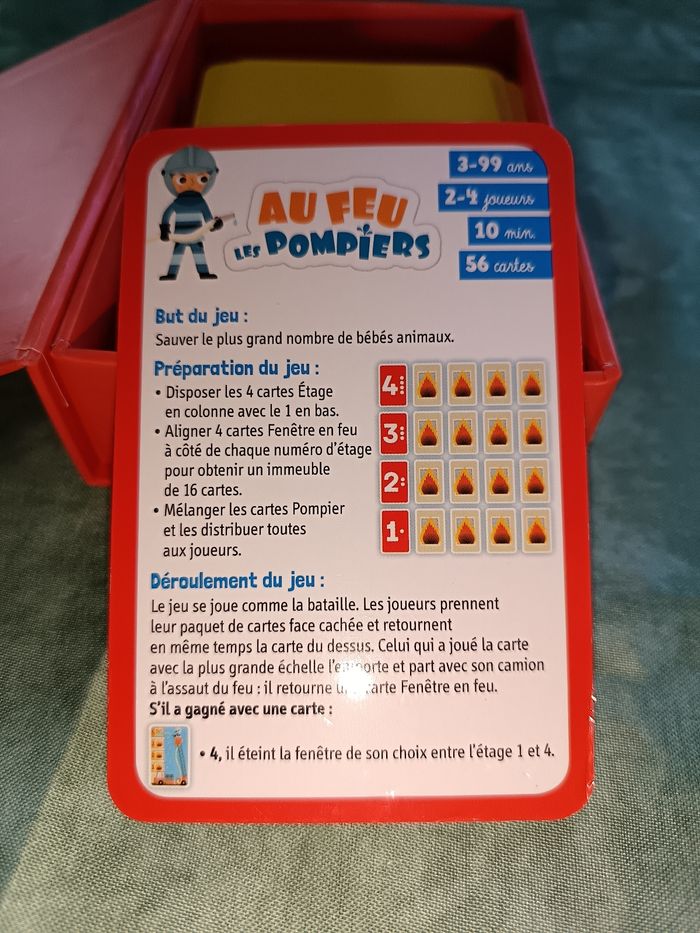 jeu de bataille revisité. Le cantinier et la cantinière ont encore mis le feu aux cuisines et l'immeuble est en feu ! ! Qui déploiera la plus grande échelle pour atteindre les terribles flammes et sauver un maximum de vies ?