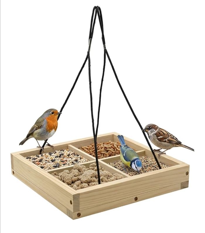 Plateau de Nourriture pour Oiseaux en Bois Plate-Forme d’Alimentation Plateau d’Alimentation en Bois Suspendu pour Jardin extérieur Oiseau Sauvage