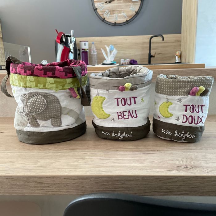 Bonjour, je vends ces 3 paniers gigogne en très bon état. Idéal pour ranger les produits de bébé à côté du plan à langer.