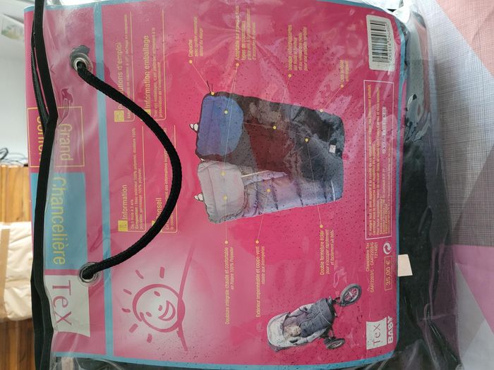 Chancelière pour poussette , neuve, dans son sachet d'origine. Bien chaude. Possibilité d'en acheter 2 car j'avais des jumeaux. En vente aussi la poussette double spéciale jumeaux marque Chicco, rouge et les 2 ombrelles rouges .