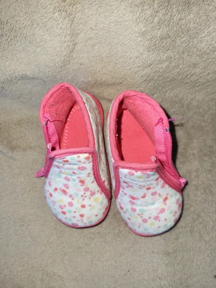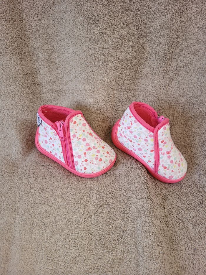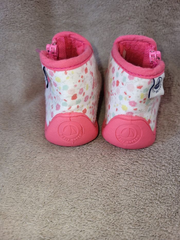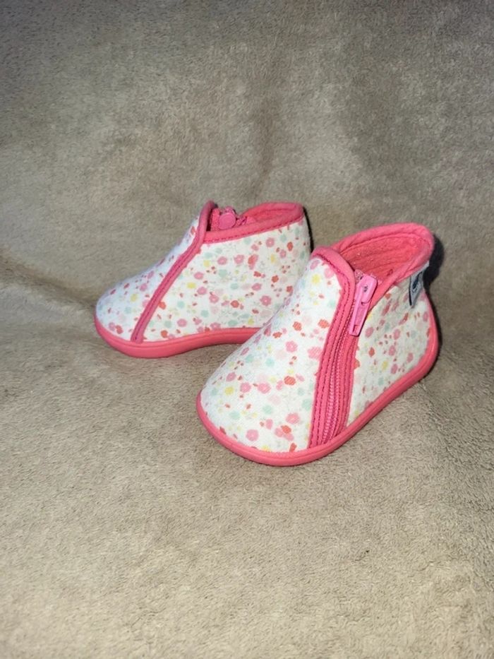 Chaussons bébé fille Petit bateau Pointure 18 Blanc et rose à motifs petites fleurs Enfilage facile grâce à la fermeture éclair #virgy61chaussuresfille