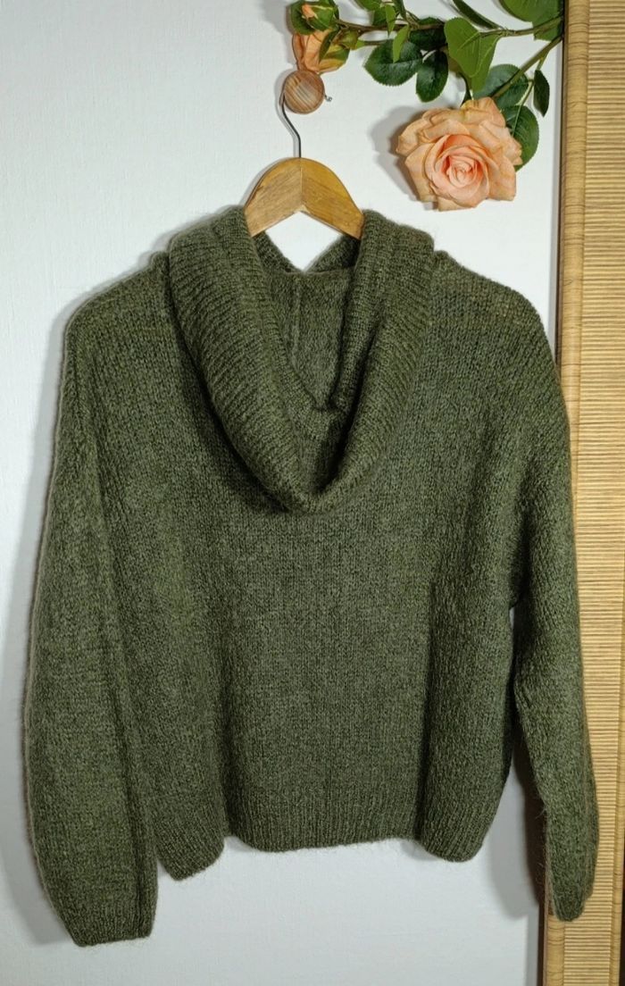 Pull tendance a capuche kaki / kid mohair taille L - photo numéro 3