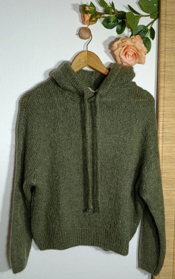 Pull tendance a capuche kaki / kid mohair taille L - photo numéro 2