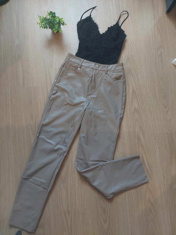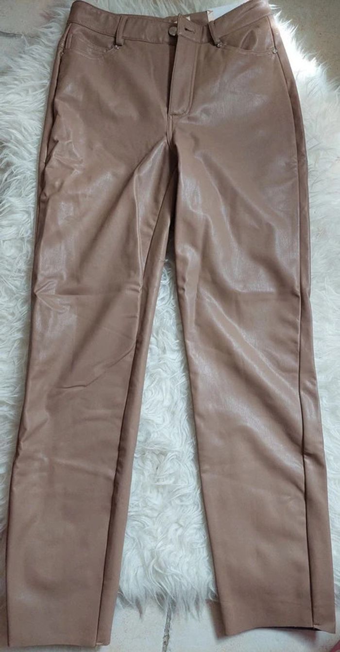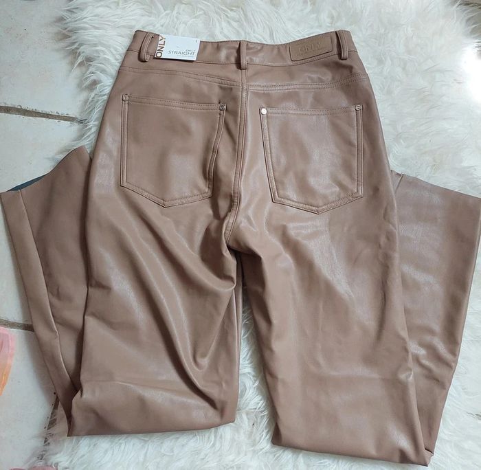 Pantalon simili cuir camel Emily Straight High Waist Ankle T.S Only neuf - photo numéro 5