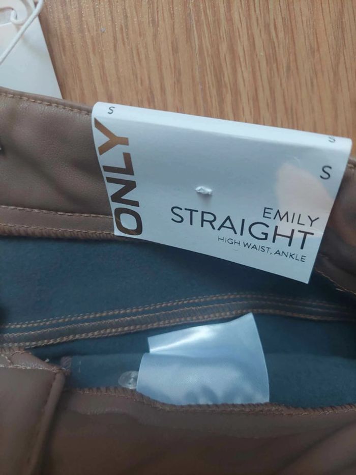 Pantalon simili cuir camel Emily Straight High Waist Ankle T.S Only neuf - photo numéro 3