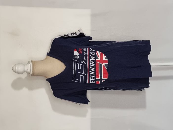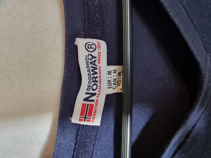 T-shirt homme Geographic Norway blanc marine et blanc taille M. Taille grand (le mannequin fait du S). En très bon état. Envoi rapide et soigné. Négociable.