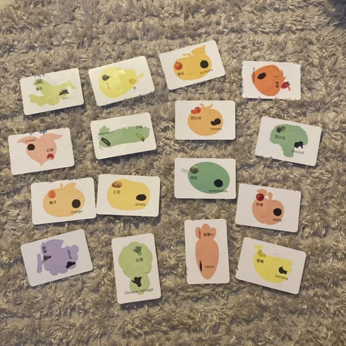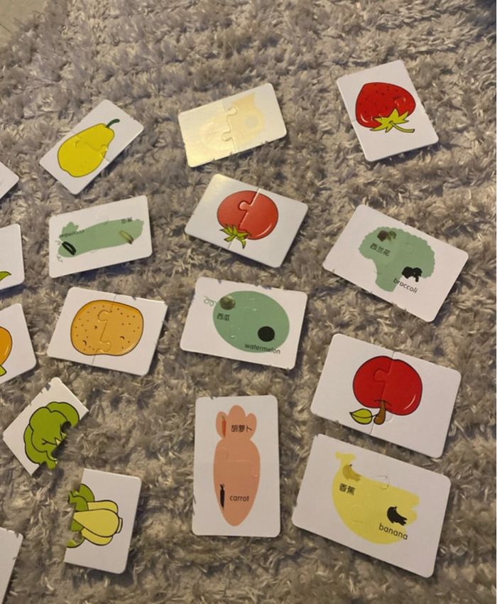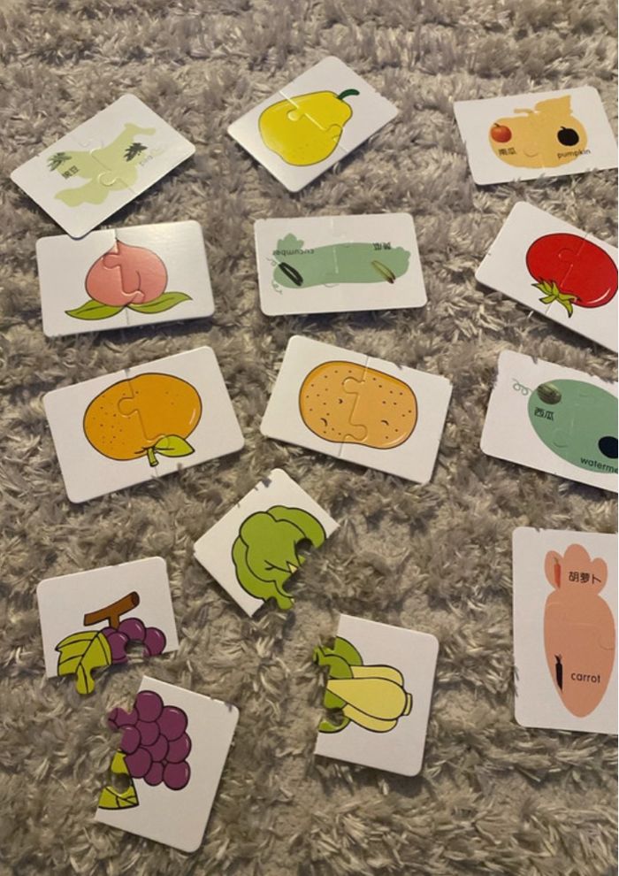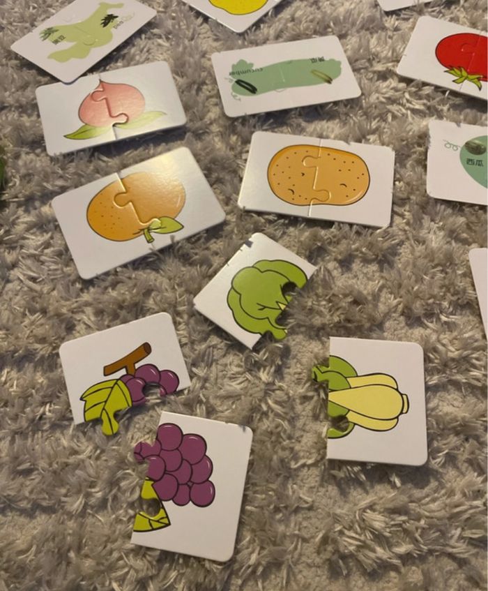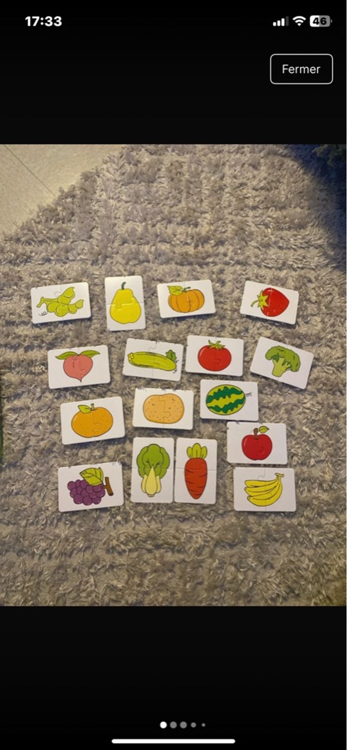 16 Petits puzzles de 2 pièces fruits et légumes