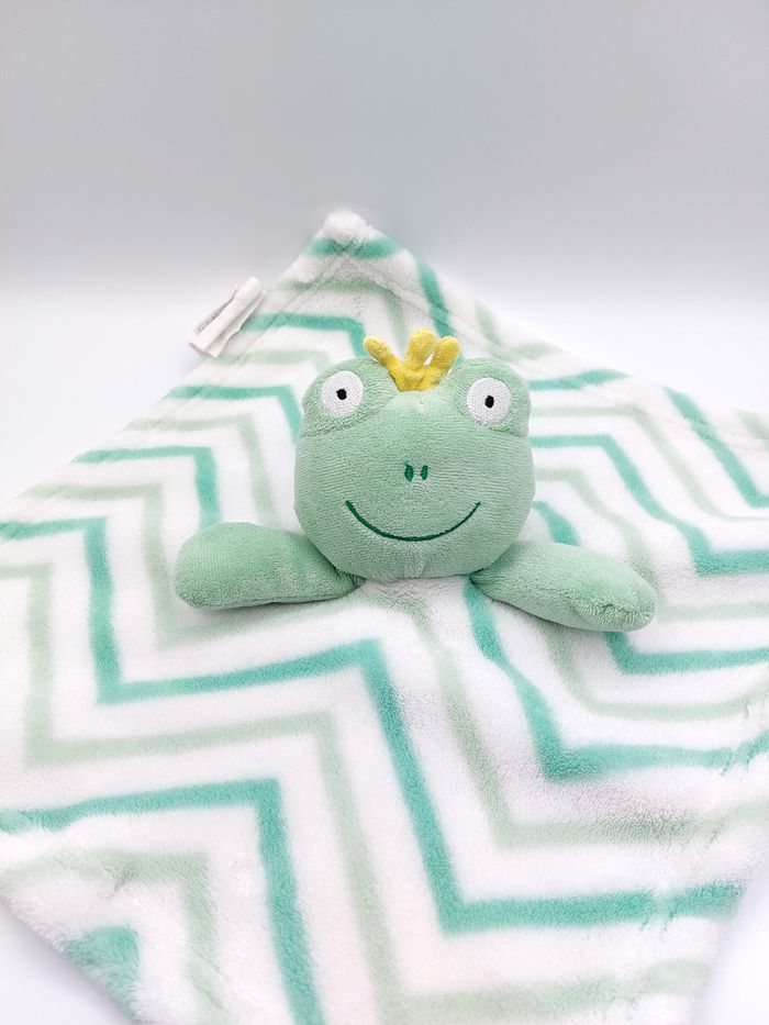Doudou plat grenouille carré vert blanc SL Home Fashions couronne jaune - photo numéro 1