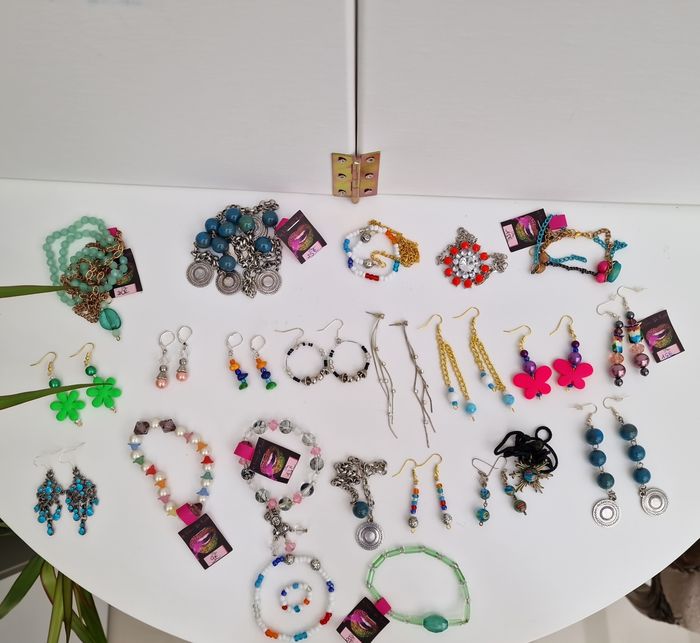 Calendrier de l'avent avec 24 bijoux fantaisies. A offrir pour la Saint Nicolas, Noël, Anniversaire ou même comme ca. Le calendrier comprend: -1 calendrier de l'avent en carton -5 Colliers -12 paires de boucles d'oreilles fantaisie -1 bague perles réglables élastiqué -6 bracelets -Le calendrier est neuf ainsi que les bijoux! -Le prix du calendrier est au bas prix pour que chacun a une chance de l'acheter. Sa vous fait +- 1.20 le bijoux ce qui est donné. -Sur certains bijoux je laisse les étiquettes de prix vous pouvez les retirer avant d'offrir. -Vous pouvez configurez le calendrier et les bijoux comme vous le souhaitez. -Après utilisation le calendrier peut être réutiliser l'année prochaine si vous n'arracher pas les cases. -Les articles seront emballés avec soins et expédiés avec soins. Pour la livraison : -Mondial Relay 24h après achat!