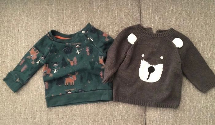 3 vestes et 2 pulls en très bon état. Différentes marques (tape a l’œil, kiabi, primark…)
