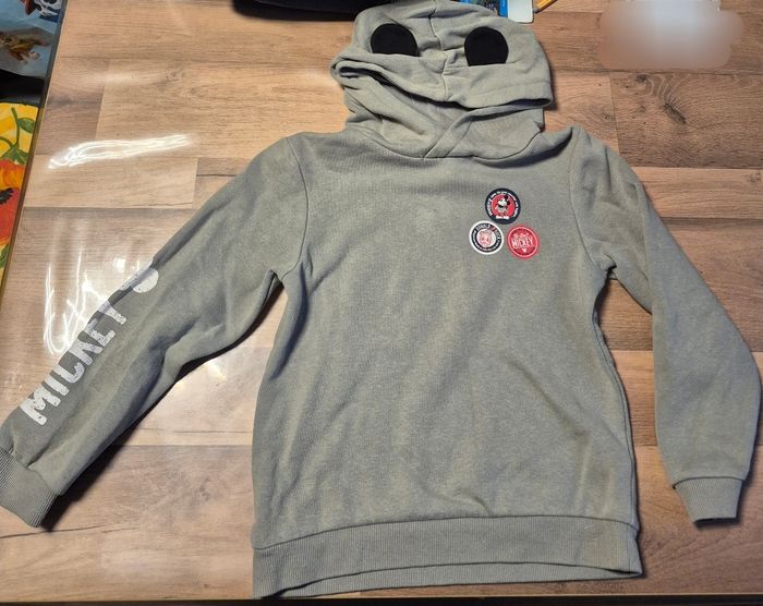 • sweat a capuche Mickey Disney 8 ans , bon état ( bouloché légèrement, tache a peine visible