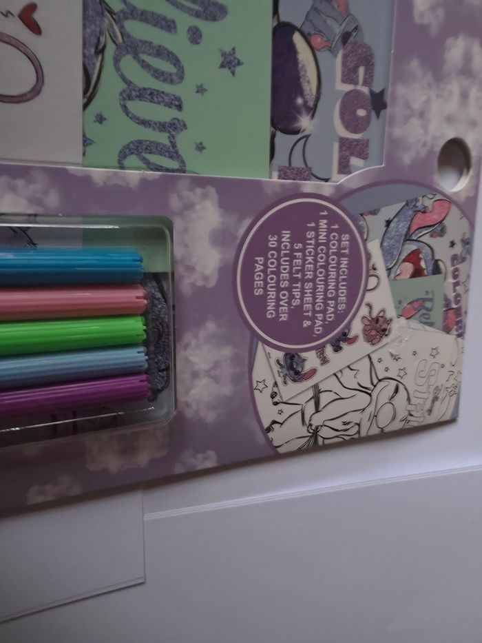 Neuf avec étiquette 1 cahier de coloriage, 1 mini cahier de coloriage, 1 planche d'autocollants et 5 crayons de couleur