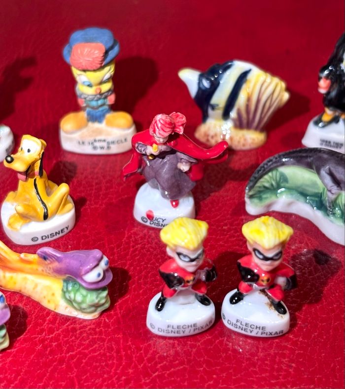 Lot de 12 fèves Disney personnages de films - Meeko - Pocahontas - Kron - Dinosaure - 3 poissons - Le Monde de Némo - 2 Flèche - Les Indestructibles - Lucy - Le Monde de Narnia - Miss Tick - La bande de Picsou - Bop Bip - WB - Pluto **fève opaque - Titi - le 16ème siècle **fève opaque ⛔️ Prix FIXES, NON négociables 🚨  👏🏻 Réductions sur les lots 👍🏻 #feves #figurines #disney #galettedesrois #fevesenceramique