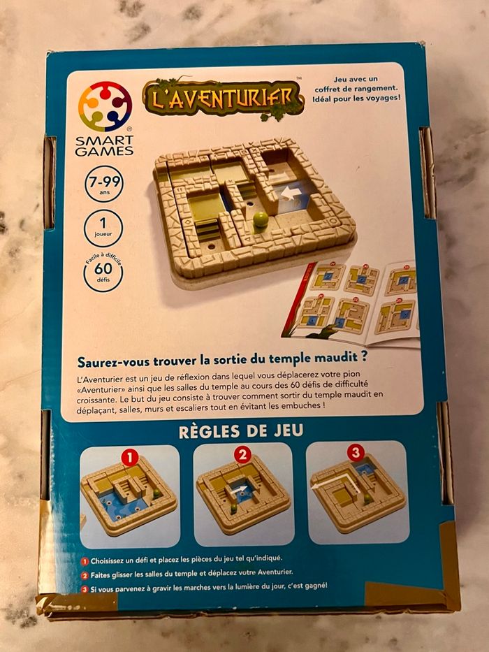 «Aventurier» ainsi que les salles du temple au cours des 60 défis de difficulté croissante. Le but du jeu consiste à trouver comment sortir du temple maudit en déplaçant, salles, murs et escaliers tout en évitant les embuches !