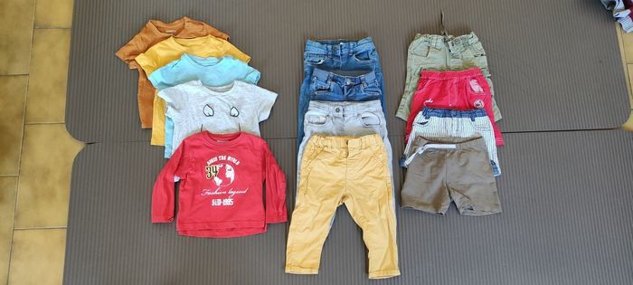 Lot de vêtements garçon allant de 9/12 mois à 18 mois. Il y a une petite tâche derrière le pantalon de jogging Adidas
