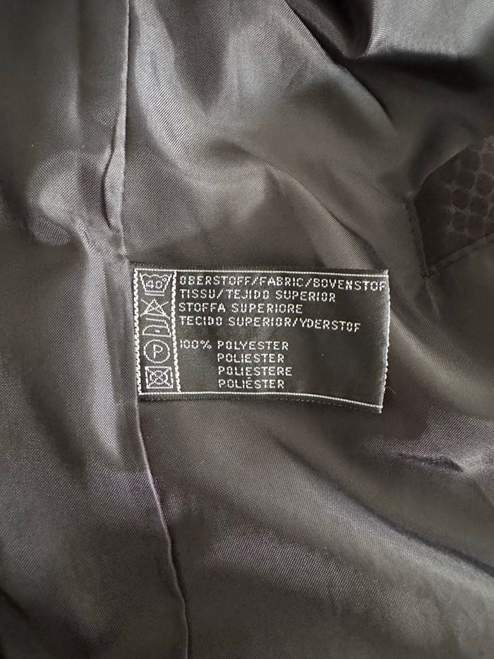 Imperméable - Excellent état - Taille 38 équivalent M Dimensions en bas de l’annonce - Coupe oversize - Couleur noire - Reflets argentés - Imprimés python serpent - Se ferme avec un zip et des boutons - Deux poches - Doublure intérieure - Vintage, années 80’ - 100% polyester Dimensions: - 49cm niveau épaules - 57cm niveau aisselles - 79cm de long