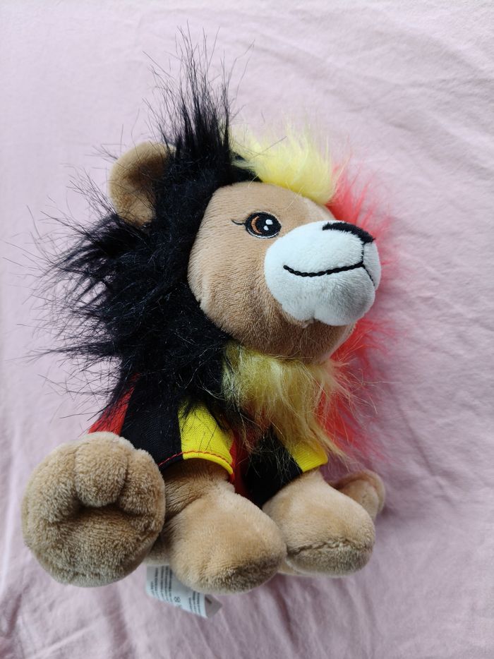Peluche lion Delhaize Team Belgian noir jaune rouge 20 cm