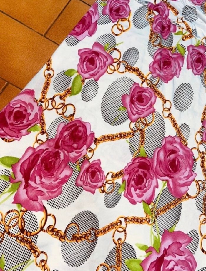 Robe blanche motif rosé chaîne doré bon état taille s asymétrique - photo numéro 2