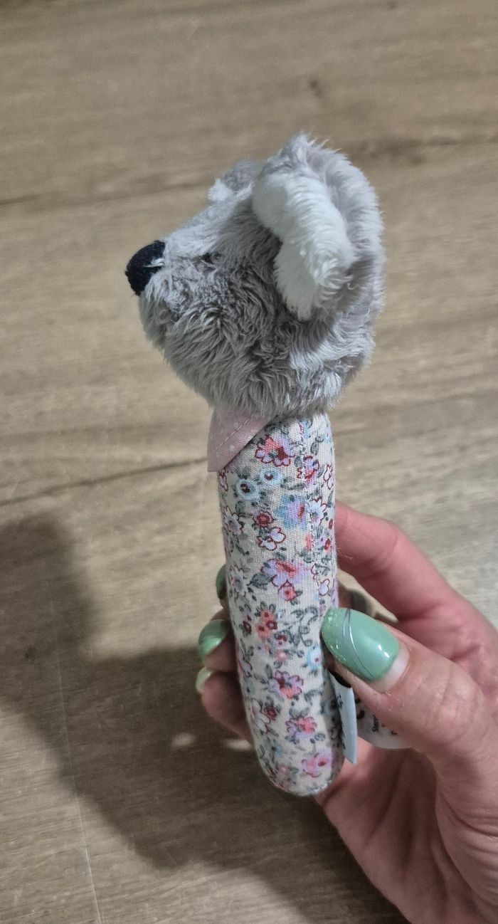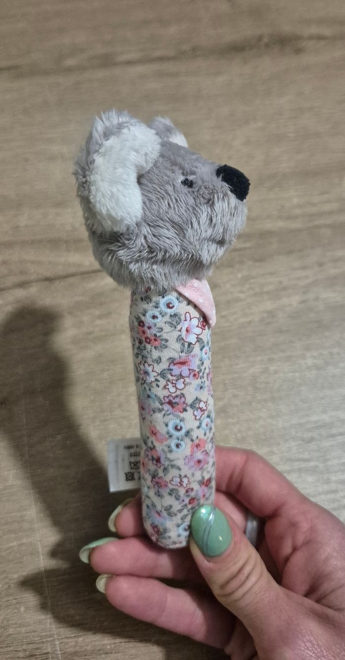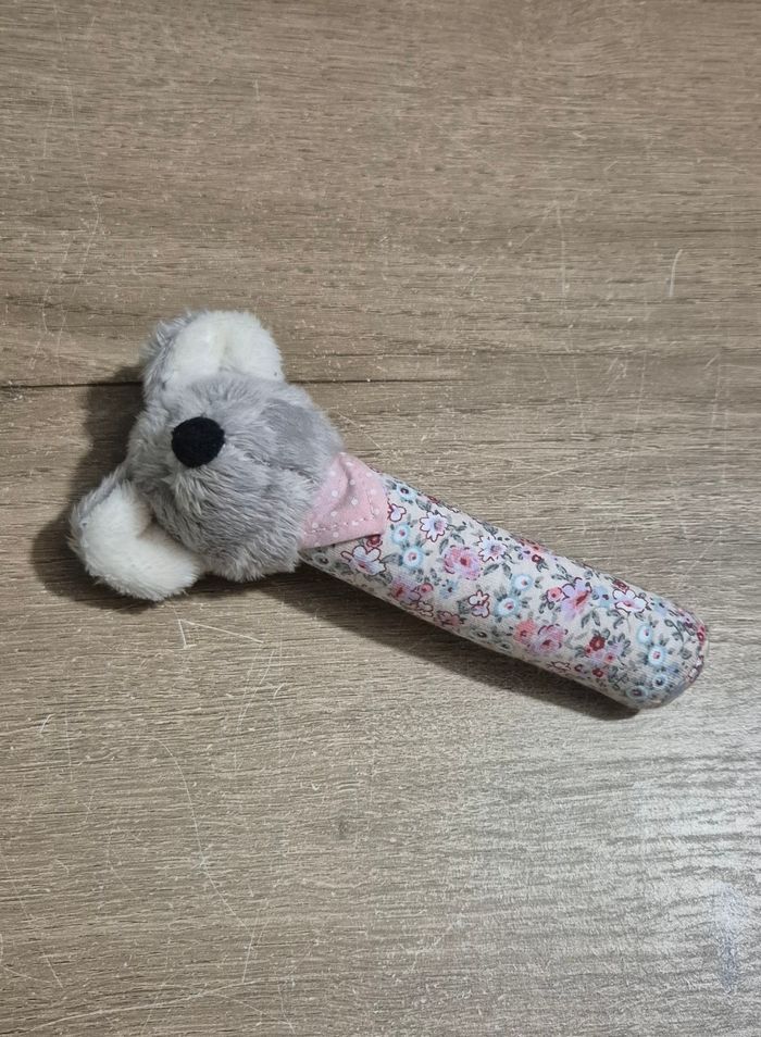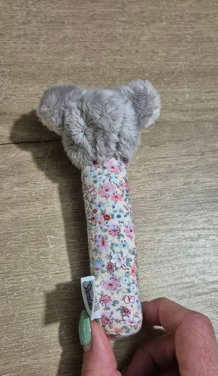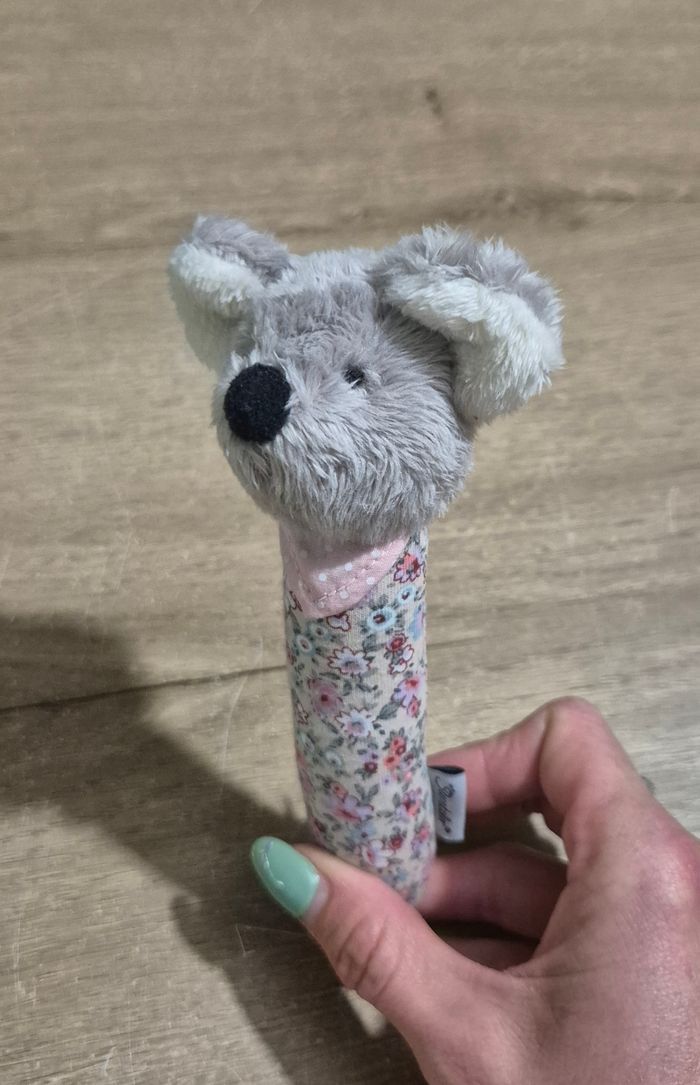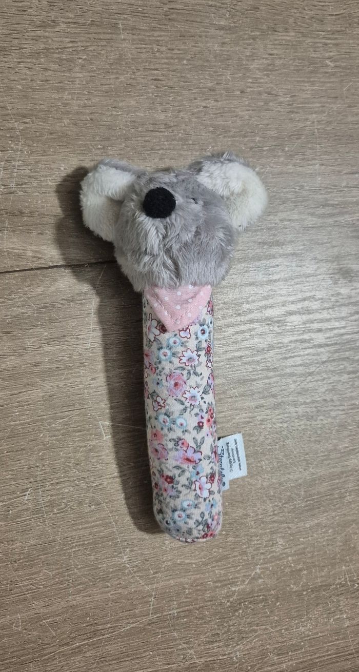 Hochet souris en tissus à motifs fleuris, tête de souris toute douce Bruit de pouet pouet Sterntaler Neuf