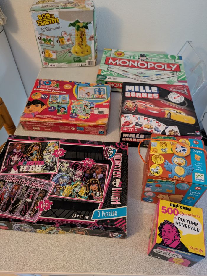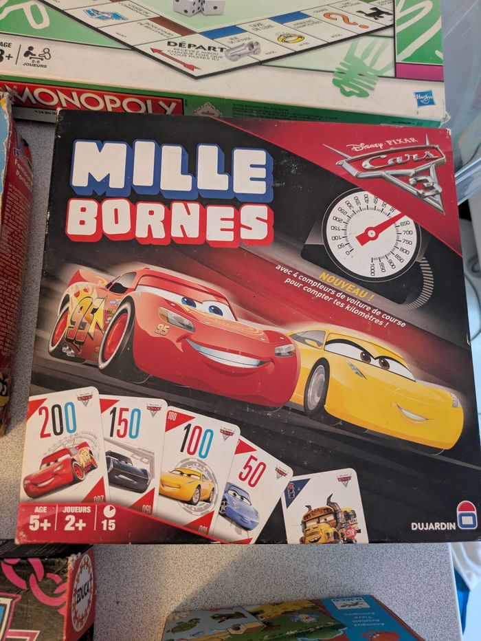Lot de 7 jeux de société Monopoly mille bornes cars sos ouistiti ...
