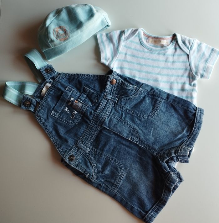 Salopette courte+ body+ chapeau taille 9 mois GEMO