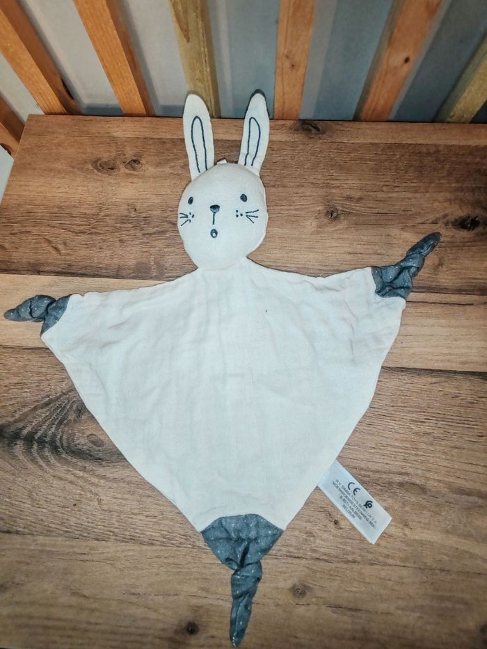 Doudou plat Lapin lange blanc gris SIMBA toy KIABI Tbe Étiquette marque présente 15.90 euros Envoi en relais
