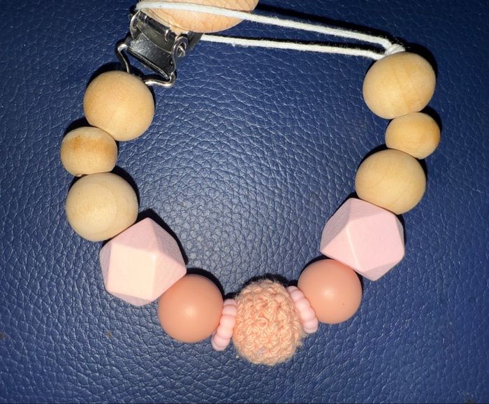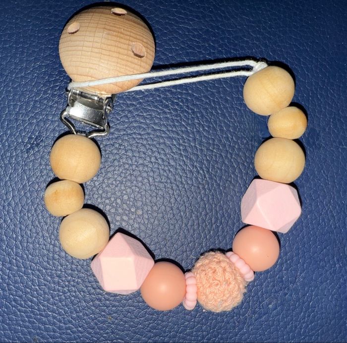 Attache tétine / attache sucette bois et silicone