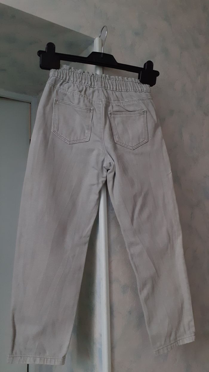 Vends un jean large et souple 100 % coton, ceinture élastique, couleur gris délavé, marque Kiabi, taille 7 ans (120-125 cm). Longueur entrejambe : 45 cm.