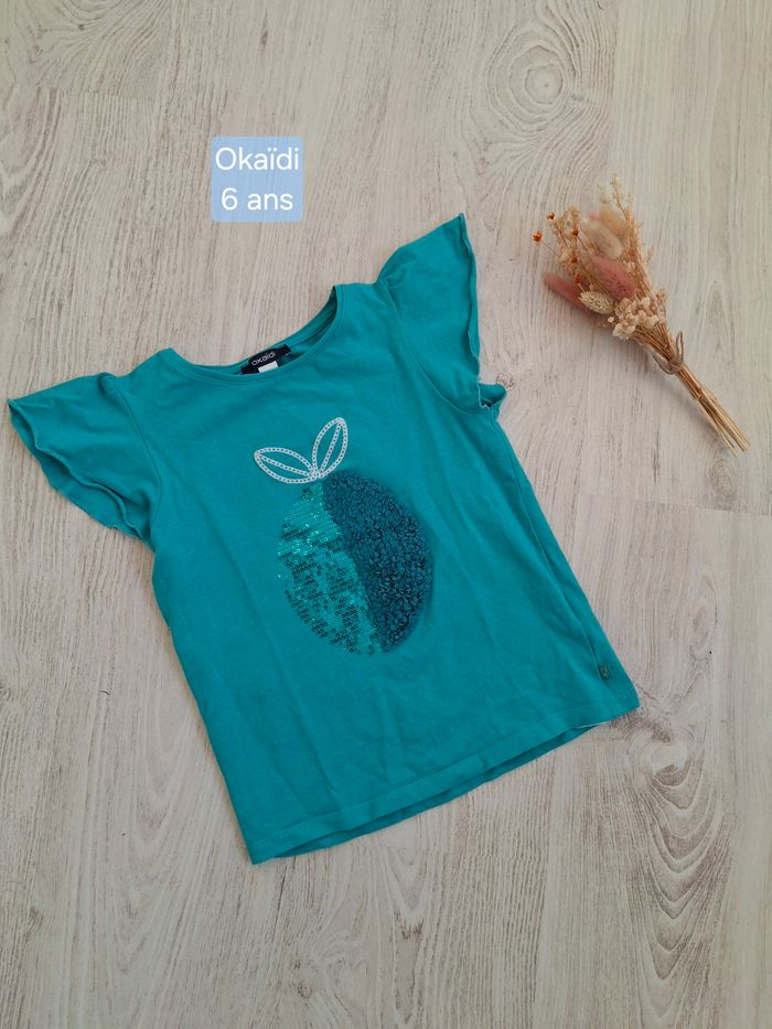 Haut/T-shirt fille turquoise  Okaïdi – 6 ans - photo numéro 1