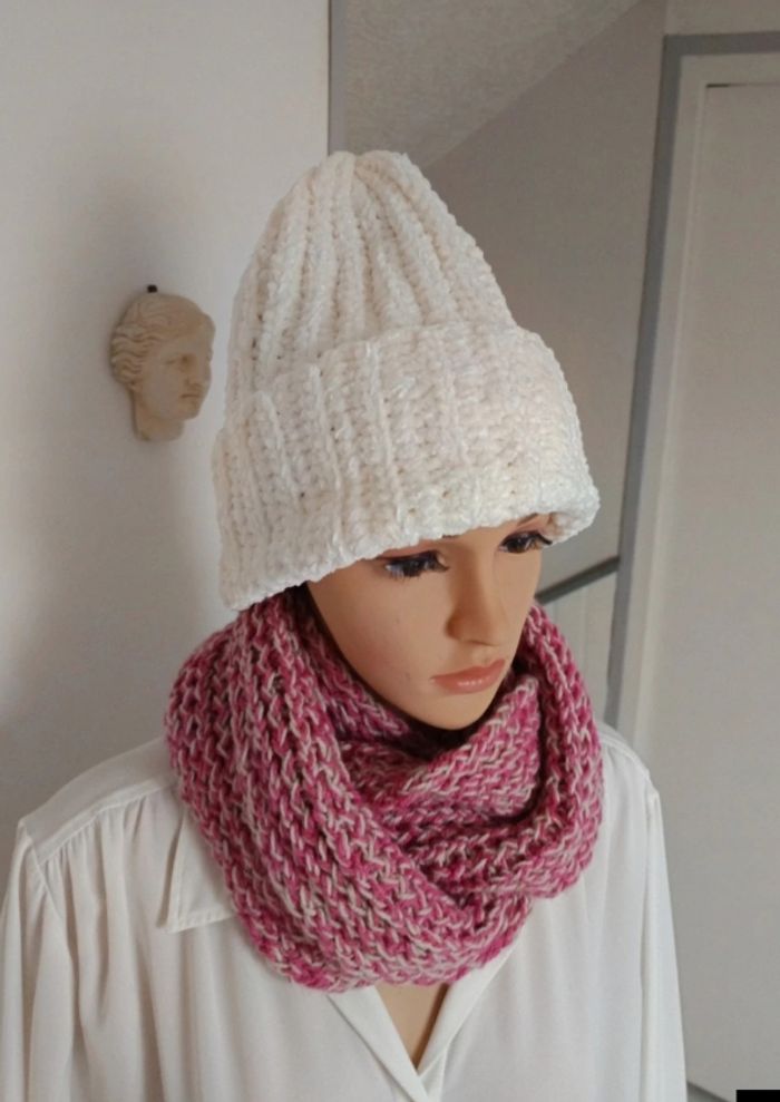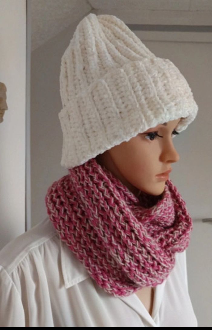 Bonnet femme réalisé au crochet. Couleur crème. Ultra doux Bien long pour vous permettre de faire un grand repli et d'avoir bien chaud aux oreilles 😊